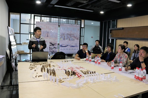 5月4日上午,与会的九所高校分成四组同步进行答辩。曲艺带领学院4名学生参加了本次联合毕业设计。每支代表队由队长先行发言,阐述所做设计的实地调研背景以及分析结果,其余学生依次发言,展示自己的单体建筑设计。全队发言完毕,由评委老师进行指导、提问。