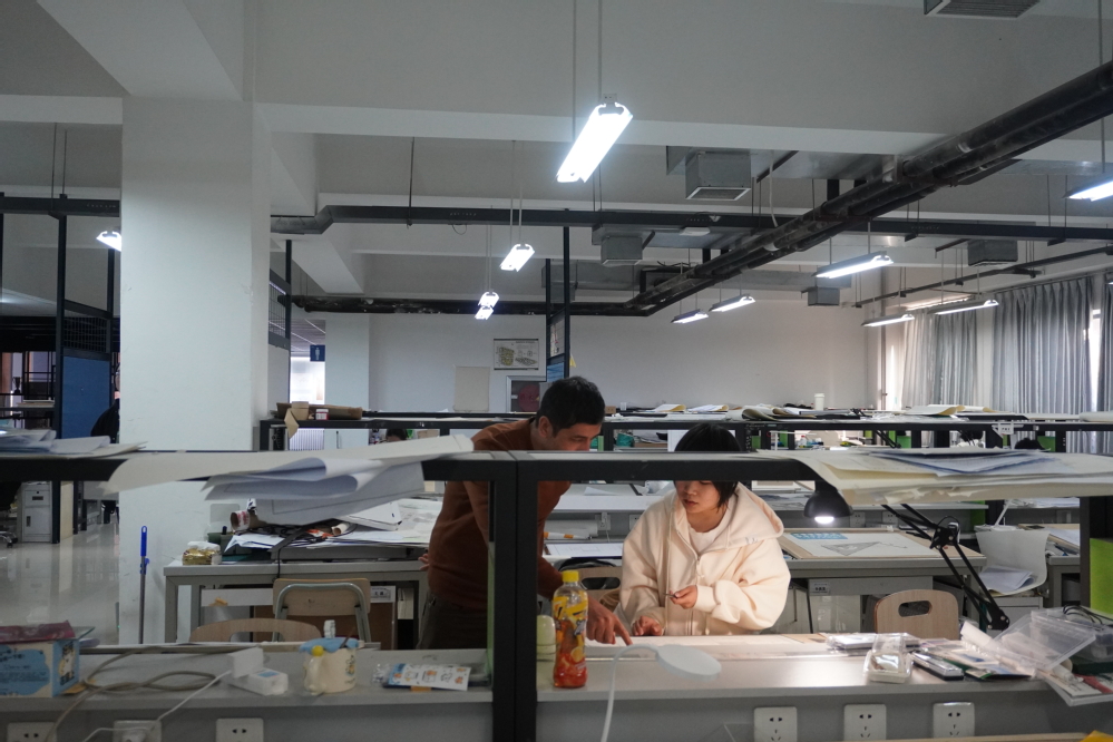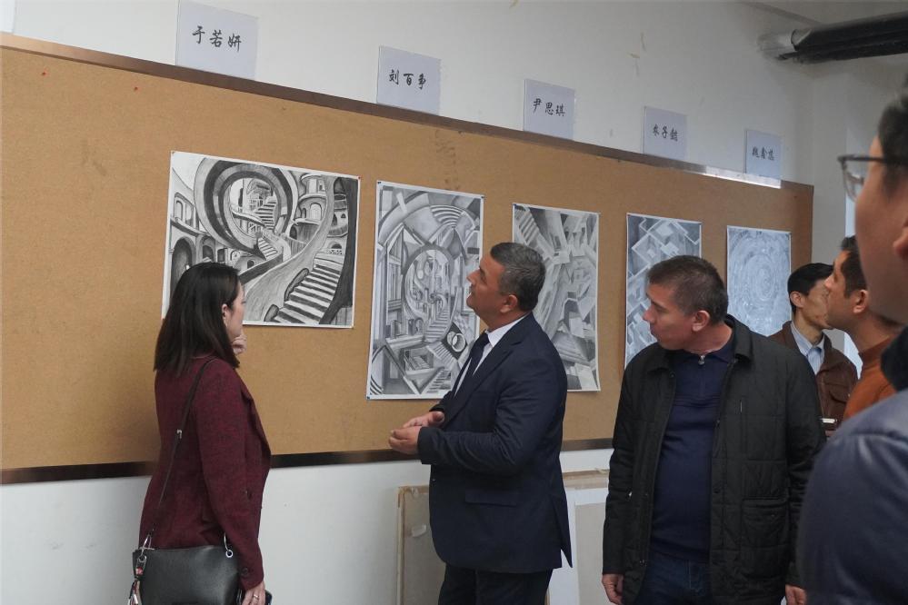 Chidem Janbay Turkyılmaz校长一行参观了学院梁思成纪念馆、学生作业展、与香港中文大学共建国际暑期课课程成果展、学生美术作品展等,同时对学院专业教室、美术教室等基础教学设施进行了实地考察,并建筑学院学子们进行亲切交流。