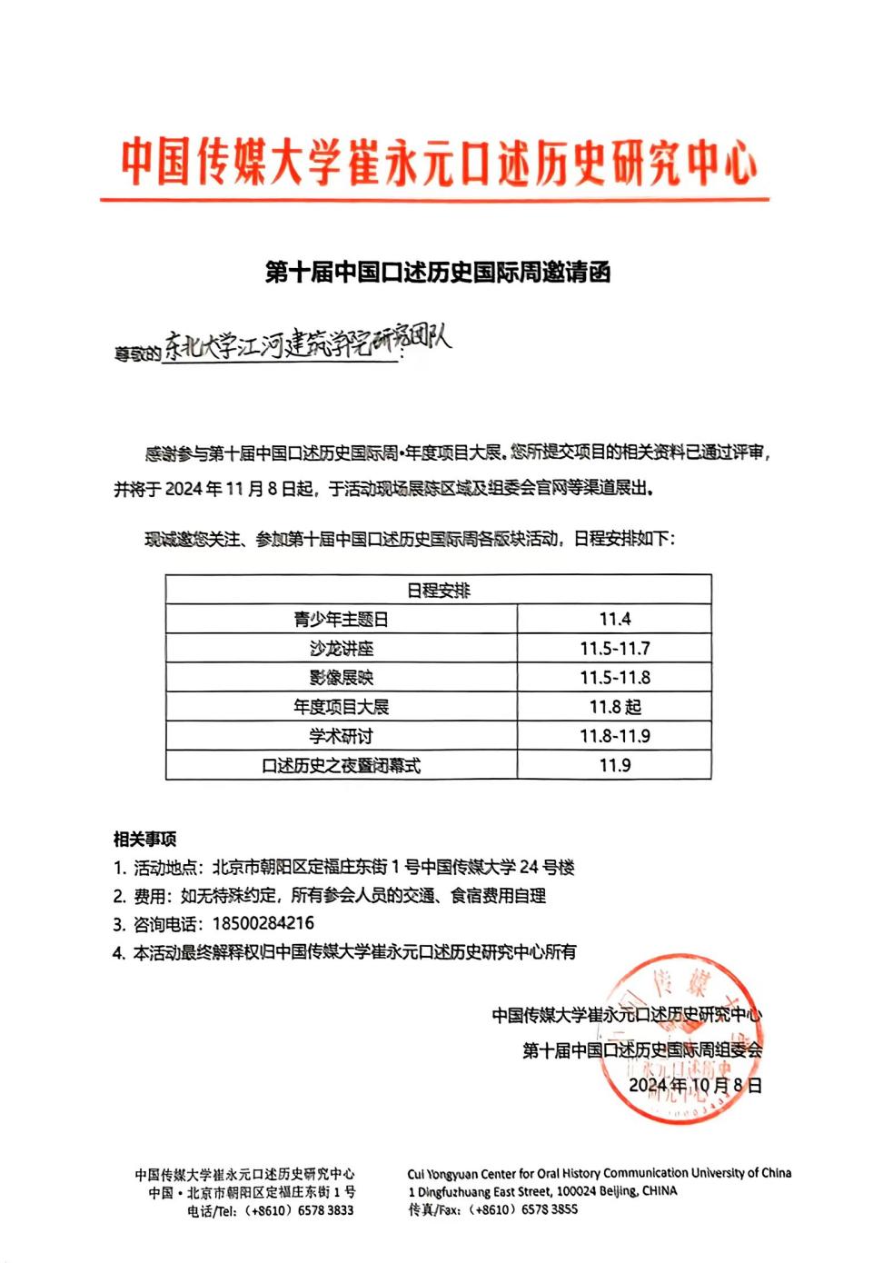 第十届中国口述历史国际周我院项目团队邀请函