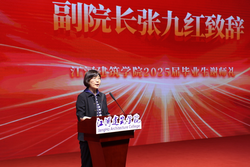 第一篇章“筑基·师道华章”伊始,学院领导班子成员、专任教师和机关教师依次步入会场,全体师生共同欣赏学院2025届毕业季视频《图筑五年》。随后副院长张九红致辞,她首先向全体毕业生送上热烈祝贺,并提出三点期望:一是坚守本真,在未来挑战中保持初心,坚定信念;二是胸怀家国,牢记建筑人的时代使命;三是躬身力行,以奋斗为青春底色,迎难而上,用行动践行责任,书写属于自己的时代篇章。同时向辛勤耕耘、默默付出的老师们表达衷心的感谢。接下来2025届毕业生代表,研究生李瑾、本科生蔡资潇、刘畅带来演讲《铭记师恩厚谊 传承梁林使命》。