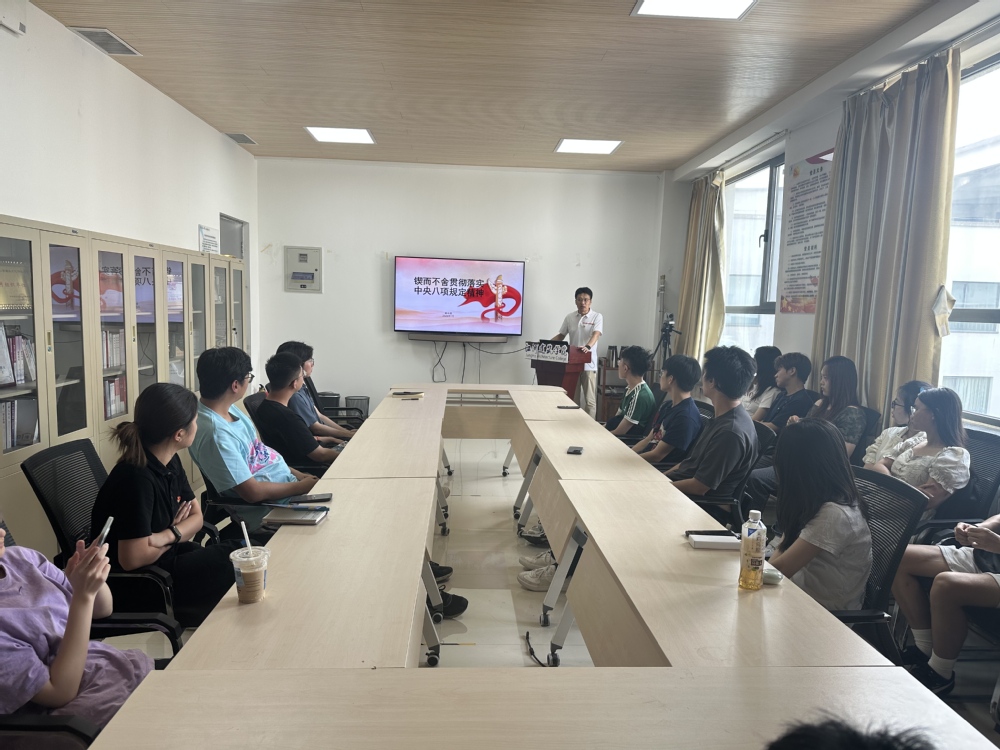 为深入贯彻中央八项规定精神深化学生党性教育,引导广大党员同学牢记党员身份、不忘初心,7月10日下午,学院党委副书记兼副院长韩丰琨以“锲而不舍贯彻落实中央八项规定精神”为题讲授党课。学院党委组织员王莹及学生党员代表参会。